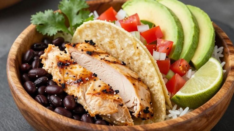 📌 Bowl di taco al pollo: 45g di proteine e 9g di fibre per porzione per le tue cene espresse