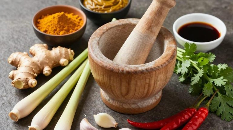 I noodles ramen istantanei si reinventano grazie a una pasta di curry fatta in casa che trasforma questo piatto espresso in una vera esperienza gustativa asiatica. Questa preparazione aromatica al mortaio, arricchita con citronella e latte di cocco, rivela come una semplice ciotola di noodles possa diventare un banchetto esotico in pochi gesti.