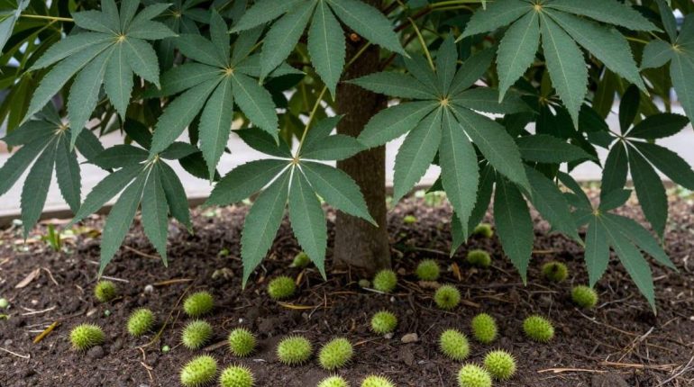 Le sue foglie a stella e le sue capsule spinose ricoprono i…
