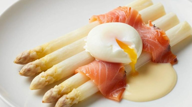 Gli asparagi bianchi si trasformano in un piatto gastronomico quando incontrano il salmone affumicato, l’uovo in camicia e la salsa olandese. Questa ricetta elegante sposa sapori delicati e consistenze fondenti. Scoprite come comporre questo piatto raffinato degno di un grande ristorante in soli 35 minuti.