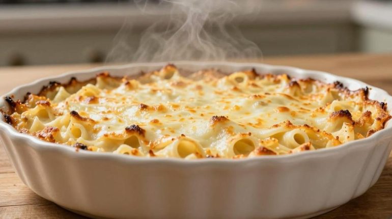 📌 Gratin di pasta con pollo e funghi: la ricetta cremosa che trasforma i vostri avanzi in un piatto confortante