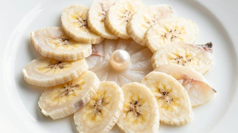 📌 Carpaccio di branzino: la banana e il latte di cocco reinventano questo classico della cucina cruda
