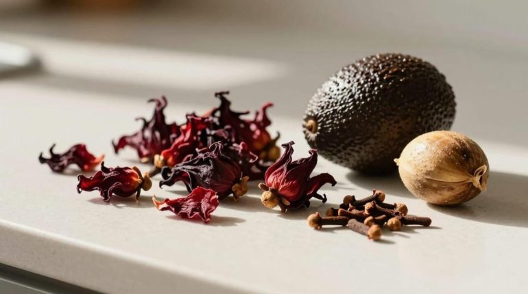 Una manciata di fiori d’ibisco essiccati, otto chiodi di garofano…