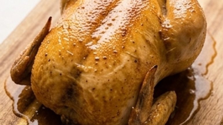 - Il pollo intero — Scegline uno tra 1,5 e 2 kg. Troppo piccolo, si cuocerà prima di aver avuto il tempo di insaporirsi. Troppo grande, rischia di non entrare nel contenitore standard. L’essenziale: asciugarlo accuratamente con carta assorbente prima di condire. Una pelle umida non prenderà mai colore.