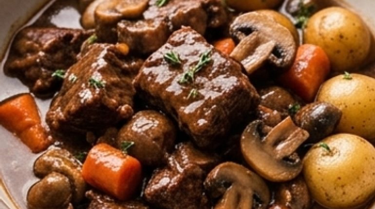 Il bœuf bourguignon senza vino che regge davvero il confronto — esiste, ed è buonissimo. Molti pensano che il vino rosso sia insostituibile in questo piatto. Si sbagliano: è la profondità dei sapori che conta, non il supporto liquido per ottenerli.