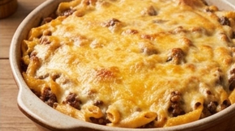 Quel profumo, quando il cheddar inizia a gratinare e appaiono alcune bollicine caramellate sui bordi della teglia — è esattamente questo che fa risvegliare l’appetito in cucina. Il gratin di pasta con manzo e formaggio è il piatto che non ha bisogno di presentazioni, ma che si mangia sempre fino all’ultimo cucchiaio. E per ospitare senza complicarsi la vita, è difficile fare di meglio.