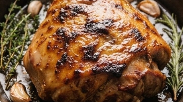 📌 Spalla d’agnello confit al forno con aglio, miele e senape