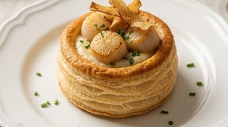 📌 Vol-au-vent alle capesante, topinambur e chips di scorzobianca