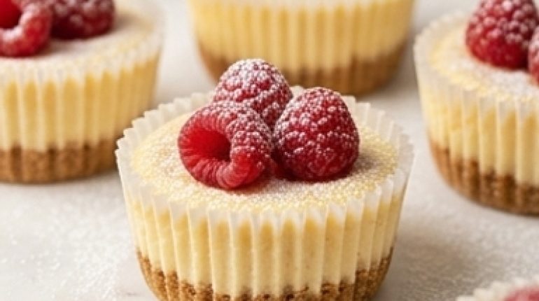 La mini cheesecake fa paura senza motivo. È solo formaggio spalmabile, biscotti sbriciolati, lamponi — non è alta pasticceria. Venti minuti di preparazione, venti minuti in forno, e il frigorifero finisce il lavoro per voi.