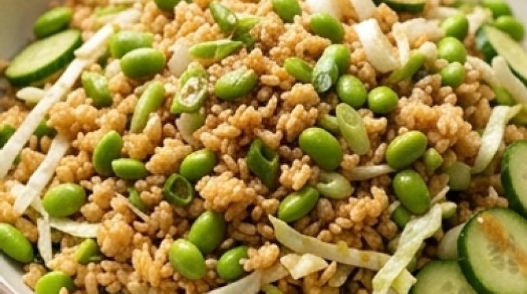 📌 Insalata di riso croccante con edamame e salsa al sesamo