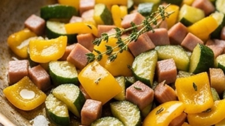 Questo è il genere di ricetta che nasce di martedì sera, quando il frigo inizia a sembrare un terreno abbandonato di fine estate. Un cetriolo dimenticato, un peperone un po’ moscio, due fette di fesa di tacchino — e in venti minuti, hai un piatto caldo in tavola. Senza fronzoli.