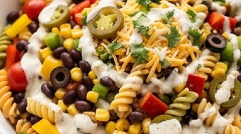 “Insalata di pasta” — la gente immagina una cosa insipida, un po’ molle, affogata in una salsa troppo densa. La realtà di questa versione southwest? È l’esatto opposto. Pasta che trattiene la salsa grazie alle sue spirali, verdure che scrocchiano davvero e un ranch speziato al cumino che cambia completamente le carte in tavola.