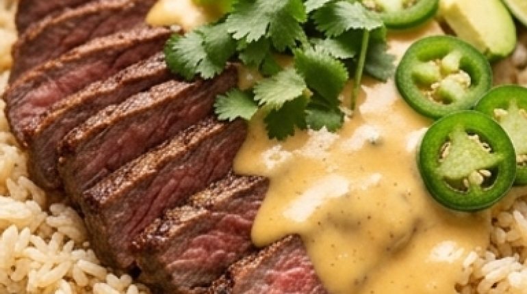 📌 Bistecca, Riso e Salsa Queso Cremosa
