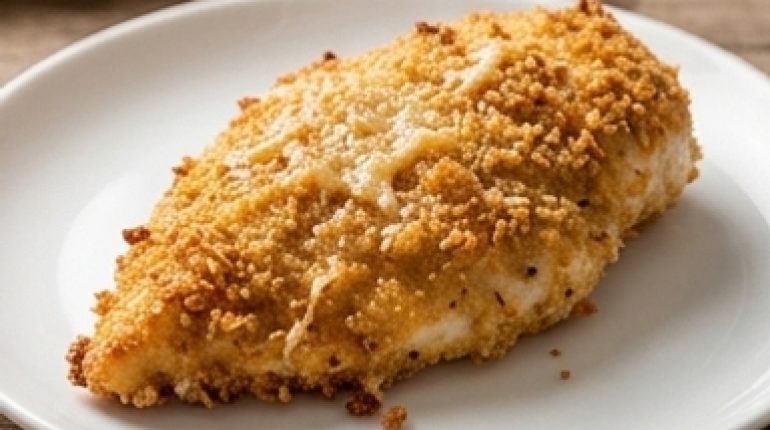 Il pollo impanato è spesso deludente: molle sotto, crosticina che si stacca e poco sapore al centro. Questa versione cambia le regole del gioco. Una crosticina al parmigiano che scrocchia sotto i denti, un pollo succoso all’interno e zero frittura da gestire.