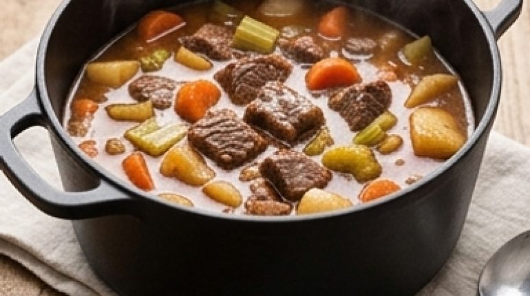 Cos’è esattamente quello che cerchiamo quando fuori fa freddo e abbiamo fame? Un piatto che sobbolle da due ore, che profuma tutta la casa e che non chiede altro che tempo. Questo spezzatino di manzo è proprio questo.