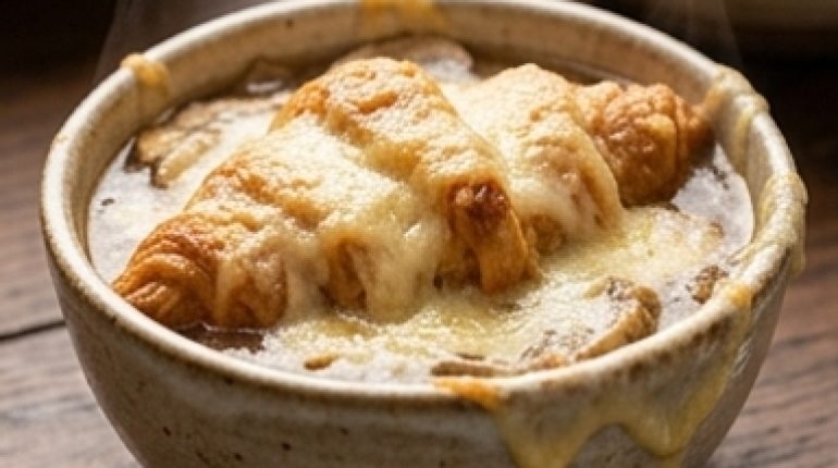 📌 Zuppa di cipolle antinfiammatoria con funghi e croissant gratinato