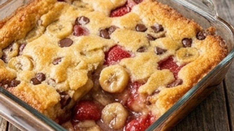 Quando sentono ‘dump cake’, le persone immaginano una poltiglia che cola fuori dal forno. Questa torta banana split al forno è esattamente l’opposto: sembra qualcosa che ha richiesto cura, pur non richiedendone quasi affatto. Dieci minuti di preparazione e il forno fa il resto mentre tu ti godi il fine settimana.